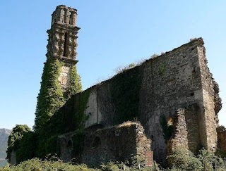 This structure in Argentinia could have been a house. Don't the tree roots look like stick figures climbing up? Framed by these blue flowers, it looks more like art than a building now